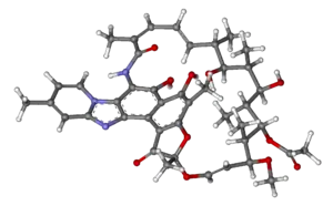 • CC(=O)O[C@H]3[C@H](C)[C@H](O)[C@H](C)[C@@H](O)[C@@H](C)\C=C\C=C(\C)C(=O)Nc6c2c(nc1cc(C)ccn12)c5c4C(=O)[C@@](C)(O/C=C/[C@H](OC)[C@H]3C)Oc4c(C)c(O)c5c6O