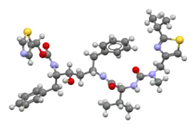 • CC(C)c4nc(CN(C)C(=O)N[C@@H](C(C)C)C(=O)N[C@@H](Cc1ccccc1)C[C@H](O)[C@H](Cc2ccccc2)NC(=O)OCc3cncs3)cs4