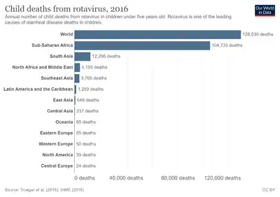 - ↑ Dadonaite B, Ritchie H (2019). "Rotavirus vaccine – an effective tool that prevents children dying from diarrhea". Archived from the original on 16 December 2021. Retrieved 27 April 2022.