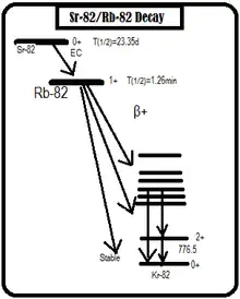 In 1953, it was discovered that rubidium carried a biological activity that was comparable to potassium.[1] In 1959, preclinical trials showed in dogs that myocardial uptake of this radionuclide was directly proportional to myocardial blood flow.[2] In 1979, Yano et al. compared several ion-exchange columns to be used in an automated 82Sr/82Rb generator for clinical testing.[3] Around 1980, pre-clinical trials began using 82Rb in PET. In 1982, Selwyn et al. examined the relation between myocardial perfusion and rubidium-82 uptake during acute ischemia in six dogs after coronary stenosis and in five volunteers and five patients with coronary artery disease.[4] Myocardial tomograms, recorded at rest and after exercise in the volunteers showed homogeneous uptake in reproducible and repeatable scans. Rubidium-82 has shown considerable accuracy, comparable to that of 99mTc-SPECT.[5][6] In 1989, the FDA approved the 82Rb/82Sr generator for commercial use in the U.S.[7] With increased 82Sr production capabilities, the use of 82Rb has increased over the last 10 years and is now approved by several health authorities worldwide.