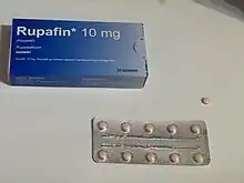 - ↑ UK package leaflet for Rupafin Archived 2018-02-10 at the Wayback Machine.