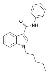 - ↑ Banister SD, Wilkinson SM, Longworth M, Stuart J, Apetz N, English K, et al. (July 2013). "The synthesis and pharmacological evaluation of adamantane-derived indoles: cannabimimetic drugs of abuse". ACS Chemical Neuroscience. 4 (7): 1081–92. doi:10.1021/cn400035r. PMC 3715837. PMID 23551277.