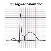 ST elevation refers to a finding on an electrocardiogram wherein the trace in the ST segment is abnormally high above the baseline.