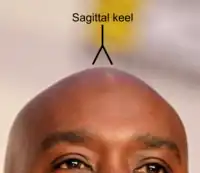 In the human skull, a sagittal keel, or sagittal torus, is a thickening of part or all of the midline of the frontal bone, or parietal bones where they meet along the sagittal suture, or on both bones. Sagittal keels differ from sagittal crests, which are found in some earlier hominins (notably the genus Paranthropus) and in a range of other mammals. While a proper crest functions in anchoring the muscles of mastication to the cranium, the keel is lower and rounded in cross-section, and the jaw muscles do not attach to it.