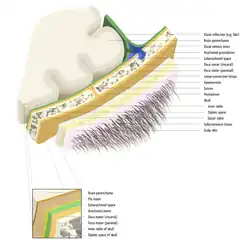 Illustration depicting the layers of the scalp and meninges