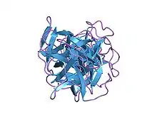 - ↑ Driscoll PC, Gronenborn AM, Beress L, Clore GM (March 1989). "Determination of the three-dimensional solution structure of the antihypertensive and antiviral protein BDS-I from the sea anemone Anemonia sulcata: a study using nuclear magnetic resonance and hybrid distance geometry-dynamical simulated annealing". Biochemistry. 28 (5): 2188–98. doi:10.1021/bi00431a033. PMID 2566326.