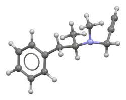 - ↑ Magyar K, Vizi ES, Ecseri Z, Knoll J (1967). "Comparative pharmacological analysis of the optical isomers of phenyl-isopropyl-methyl-propinylamine (E-250)". Acta Physiologica Academiae Scientiarum Hungaricae. 32 (4): 377–87. PMID 5595908.