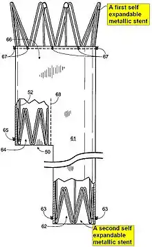 6. 1 2 3 4 5 Ell C, Hochberger J, May A, Fleig W, Hahn E (1994). "Coated and uncoated self-expanding metal stents for malignant stenosis in the upper GI tract: preliminary clinical experiences with Wallstents". Am J Gastroenterol. 89 (9): 1496–500. PMID 7521573.