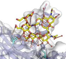 - ↑ Schowalter RM, Pastrana DV, Buck CB (July 2011). "Glycosaminoglycans and sialylated glycans sequentially facilitate Merkel cell polyomavirus infectious entry". PLOS Pathogens. 7 (7): e1002161. doi:10.1371/journal.ppat.1002161. PMC 3145800. PMID 21829355.