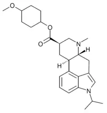- ↑ Cohen ML, Parli CJ, Fuller RW (December 1989). "5-Hydroxytryptamine2 receptor antagonist activity of the acid metabolite (1-isopropyl dihydrolysergic acid) of the ergoline ester, sergolexole (LY281067)". The Journal of Pharmacology and Experimental Therapeutics. 251 (3): 1006–11. PMID 2600800.