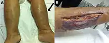 - ↑ Poovorawan, K; Chatsuwan, T; Lakananurak, N; Chansaenroj, J; Komolmit, P; Poovorawan, Y (2013). "Shewanella haliotis associated with severe soft tissue infection, Thailand". Emerging Infectious Diseases. 19 (6): 1019–1021. doi:10.3201/eid1906.121607. PMC 3713828. PMID 23735117.