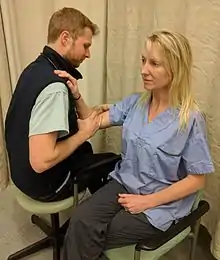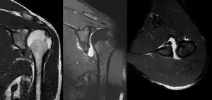 - ↑ Whelan, DB; Kletke, SN; Schemitsch, G; Chahal, J (26 June 2015). "Immobilization in External Rotation Versus Internal Rotation After Primary Anterior Shoulder Dislocation: A Meta-analysis of Randomized Controlled Trials". The American Journal of Sports Medicine. 44 (2): 521–32. doi:10.1177/0363546515585119. PMID 26116355.