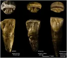 - ↑ Bailey S (October 2006). "Beyond shovel-shaped incisors: Neandertal dental morphology in a comparative context". Periodicum Biologorum. 108 (3): 253–67.