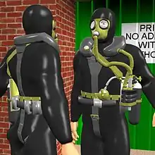 The Siebe Gorman Salvus is a light oxygen rebreather for industrial use (including by firemen and in coalmine rescue) or in shallow diving. Its duration on a filling is 30 to 40 minutes. It was very common in Britain during World War II and for a long time afterwards. Underwater the Salvus is very compact and can be used where a diver with a bigger breathing set cannot get in, such as inside cockpits of ditched aircraft. It was made by Siebe Gorman & Company, LTD in London, England.[1] It was designed in the early 1900s.[2]