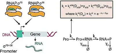 - 1 2 Kandavalli, Vinodh K.; Tran, Huy; Ribeiro, Andre S. (October 2016). "Effects of σ factor competition are promoter initiation kinetics dependent". Biochimica et Biophysica Acta (BBA) - Gene Regulatory Mechanisms. 1859 (10): 1281–1288. doi:10.1016/j.bbagrm.2016.07.011. PMID 27452766.