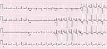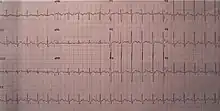 Sinus tachycardia is a sinus rhythm of the heart, with an increased rate of electrical discharge from the sinoatrial node, resulting in a tachycardia, a heart rate that is higher than the upper limit of normal (90-100 beats per minute for adult humans).[1]