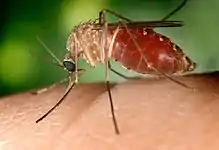 Culex mosquito on a human finger | |