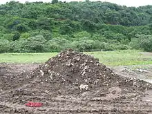 Sludge is a semi-solid slurry that can be produced from a range of industrial processes, from water treatment, wastewater treatment or on-site sanitation systems. It can be produced as a settled suspension obtained from conventional drinking water treatment,[1] as sewage sludge from wastewater treatment processes[2]: 23–25 or as fecal sludge from pit latrines and septic tanks. The term is also sometimes used as a generic term for solids separated from suspension in a liquid; this soupy material usually contains significant quantities of interstitial water (between the solid particles). Sludge can consist of a variety of particles, such as animal manure.[3]