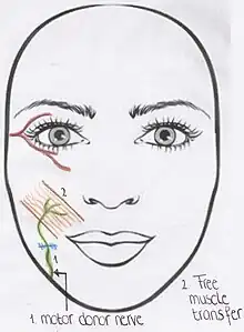 - 1 2 3 4 5 6 7 8 9 10 11 12 13 14 15 Terzis JK, Konofaos P (May 2008). "Nerve transfers in facial palsy". Facial Plast Surg. 24 (2): 177–93. doi:10.1055/s-2008-1075833. PMID 18470829.