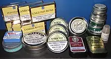 Snuff originated in the Americas and was in common use in Europe by the 17th century. Traditional snuff production consists of a lengthy, multi-step process, in tobacco snuff mills.[1] The selected tobacco leaves are first subject to special tobacco curing or fermentation processes, where they will later provide the individual characteristics and flavor for each type of snuff blend.[1] Snuff is usually scented or flavored, with many blends of snuff requiring months to years of special storage to reach the required maturity.[1] Typical traditional flavors are varieties of blended tobacco leaves considered original "fine snuff" without any addition of scents or essences.[1] Varieties of spice, piquant, fruit, floral, and mentholated (also called "medicated") soon followed, either pure or in blends.[1] Each snuff manufacturer usually has a variety of unique recipes and blends, as well as special recipes for individual customers.[1] Common flavors also include coffee, chocolate, bordeaux, honey, vanilla, cherry, orange, apricot, plum, camphor, cinnamon, rose and spearmint. Modern flavors include bourbon, cola and whisky. Traditional classic German snuff blends are the pungent and sharp Schmalzler and Brasil blends.
