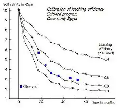 LeachMod,[21][22] using the SaltMod principles, helps in analyzing leaching experiments in which the soil salinity was monitored in various root zone layers while the model will optimize the value of the leaching efficiency of each layer so that a fit is obtained of observed with simulated soil salinity values.