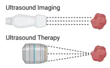 Sonodynamic therapy (SDT) is a noninvasive treatment, often used for tumor irradiation, that utilizes a sonosensitizer and the deep penetration of ultrasound to treat lesions of varying depths by reducing target cell number and preventing future tumor growth.[1][2] Many existing cancer treatment strategies cause systemic toxicity or cannot penetrate tissue deep enough to reach the entire tumor; however, emerging ultrasound stimulated therapies could offer an alternative to these treatments with their increased efficiency, greater penetration depth, and reduced side effects. Sonodynamic therapy could be used to treat cancers and other diseases, such as atherosclerosis, and diminish the risk associated with other treatment strategies since it induces cytotoxic effects only when externally stimulated by ultrasound and only at the cancerous region, as opposed to the systemic administration of chemotherapy drugs.[3][4][5]