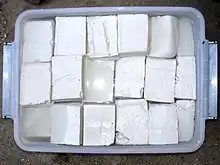 Blocks of tofu, prepared by coagulating soy milk and then pressing to remove excess water | |