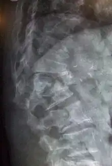 A spinal fracture, also called a vertebral fracture or a broken back, is a fracture affecting the vertebrae of the spinal column. Most types of spinal fracture confer a significant risk of spinal cord injury. After the immediate trauma, there is a risk of spinal cord injury (or worsening of an already injured spine) if the fracture is unstable, that is, likely to change alignment without internal or external fixation.[1]