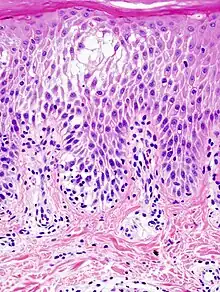 - 1 2 Alsaad, K O; Ghazarian, D (Dec 2005). "My Approach to Superficial Inflammatory Dermatoses". Journal of Clinical Pathology. 58.12 (2005) (12): 1233–1241. doi:10.1136/jcp.2005.027151. PMC 1770784. PMID 16311340.