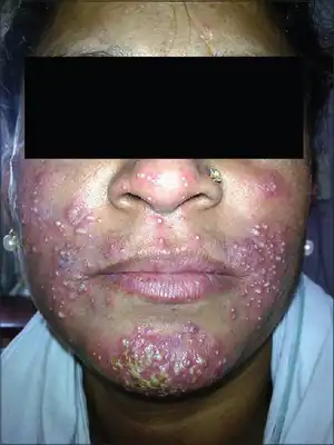 - ↑ James, William; Berger, Timothy; Elston, Dirk (2005). Andrews' Diseases of the Skin: Clinical Dermatology. (10th ed.). Saunders. ISBN 0-7216-2921-0.