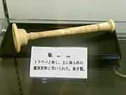 The stethoscope was invented in France in 1816 by René Laennec at the Necker-Enfants Malades Hospital in Paris.[1][2][3] It consisted of a wooden tube and was monaural. Laennec invented the stethoscope because he was not comfortable placing his ear directly onto a woman's chest in order to listen to her heart.[4][5]: 186 He observed that a rolled piece of paper, placed between the individual's chest and his ear, could amplify heart sounds without requiring physical contact.[6] Laennec's device was similar to the common ear trumpet, a historical form of hearing aid; indeed, his invention was almost indistinguishable in structure and function from the trumpet, which was commonly called a "microphone". Laennec called his device the "stethoscope"[7] (stetho- + -scope, "chest scope"), and he called its use "mediate auscultation", because it was auscultation with a tool intermediate between the individual's body and the physician's ear. (Today the word auscultation denotes all such listening, mediate or not.) The first flexible stethoscope of any sort may have been a binaural instrument with articulated joints not very clearly described in 1829.[8] In 1840, Golding Bird described a stethoscope he had been using with a flexible tube. Bird was the first to publish a description of such a stethoscope, but he noted in his paper the prior existence of an earlier design (which he thought was of little utility) which he described as the snake ear trumpet. Bird's stethoscope had a single earpiece.[9]