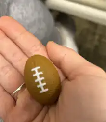 A stress ball or hand exercise ball is a malleable toy, usually not more than 7 centimetres (2.8 in) in diameter. It is squeezed in the hand and manipulated by the fingers, ostensibly to relieve stress and muscle tension or to exercise the muscles of the hand.