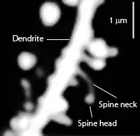 [31] The largest connection is from the cortex, in terms of cell axons. Many parts of the neocortex innervate the dorsal striatum. The cortical pyramidal neurons projecting to the striatum are located in layers II-VI, with the most dense projections come from layer V.[32] They end mainly on the dendritic spines of the spiny neurons. They are glutamatergic, exciting striatal neurons.