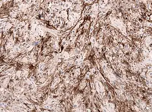 GFAP stained microscopic section of a subependymal giant cell astrocytoma | |
