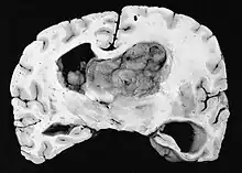 Subependymal giant cell astrocytoma (SEGA, SGCA, or SGCT) is a low-grade astrocytic brain tumor (astrocytoma) that arises within the ventricles of the brain.[1] It is most commonly associated with tuberous sclerosis complex (TSC). Although it is a low-grade tumor, its location can potentially obstruct the ventricles and lead to hydrocephalus.