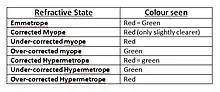 - ↑ Colligon-Bradley, P (1992). "Red-green Duochrome Test". Journal of Ophthalmic Nursing and Technology. 11 (5): 220–2. PMID 1469739.