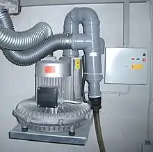 Suction devices may be mechanical hand pumps or battery or electrically operated mechanisms. In many hospitals and other health facilities, suction is typically provided by suction regulators, connected to a central medical vacuum supply by way of a pipeline system. The plastic, rigid Yankauer suction tip is one type of tip that may be attached to a suction device. Another is the plastic, nonrigid French or whistle tip catheter.[3]