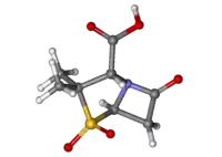 - ↑ Totir MA, Helfand MS, Carey MP, Sheri A, Buynak JD, Bonomo RA, Carey PR (August 2007). "Sulbactam forms only minimal amounts of irreversible acrylate-enzyme with SHV-1 beta-lactamase". Biochemistry. 46 (31): 8980–8987. doi:10.1021/bi7006146. PMC 2596720. PMID 17630699.