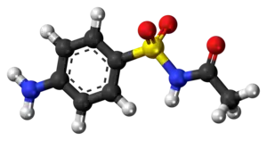 Sulfacetamide is a sulfonamide antibiotic, that is used as a cream to treat skin infections and as eye drops to treat eye infections. On the skin it is used to treat acne and seborrheic dermatitis.[8] In cream form it is used to treat bacterial infections on the skin. It can also be used orally to treat urinary tract infections.[9] It kills the bacteria by restricting the production of folic acid, which is essential for bacterial growth.[10] It mainly inhibits the multiplication of bacteria as it acts in a competitive inhibitor.