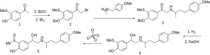 - ↑ DE 2728641, Philion, Richard Everett, "4-Hydroxyphenylalkanolaminderivate und Verfahren zu deren Herstellung [4-Hydroxyphenylalkanolamine derivatives and processes preparation thereof]", published 1978-01-05, assigned to Sterling Drug Inc.