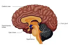 - 1 2 Ma, Melinda A.; Morrison, Elizabeth H. (2023), "Neuroanatomy, Nucleus Suprachiasmatic", StatPearls, Treasure Island (FL): StatPearls Publishing, PMID 31536270, retrieved 2023-04-09