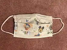 ![]() A surgical mask with hand-tied straps | |
