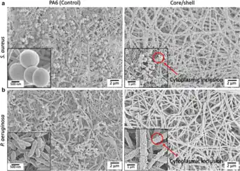 - 1 2 Keirouz, Antonios; Radacsi, Norbert; Ren, Qun; Dommann, Alex; Beldi, Guido; Maniura-Weber, Katharina; Rossi, René M.; Fortunato, Giuseppino (2020-03-18). "Nylon-6/chitosan core/shell antimicrobial nanofibers for the prevention of mesh-associated surgical site infection". Journal of Nanobiotechnology. 18 (1): 51. doi:10.1186/s12951-020-00602-9. ISSN 1477-3155. PMC 7081698. PMID 32188479.