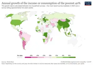 There has been a growth in income for poorer people in 2012–2017. Nevertheless, it is common in many countries that "the bottom 40 per cent of the population receive less than 25 per cent of the overall income".[5]: 12
