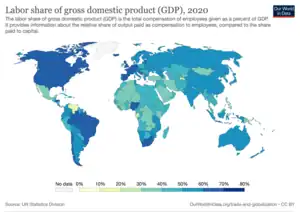 A UN progress report from 2020 stated that: "The global labour income share has shown a downward trend since 2004, when it stood at 54 percent, implying that workers are receiving a smaller proportion of the output they helped produce".[14]