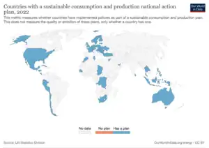 Blue indicates countries that do have a sustainable consumption and production (SCP) national action plan.[2]