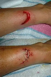 6. 1 2 3 4 5 6 7 8 Trott, Alexander (2012). Wounds and lacerations: emergency care and closure. Philadelphia, Pennsylvania. ISBN 978-0-323-09132-9. OCLC 793588304.{{cite book}}: CS1 maint: location missing publisher (link)