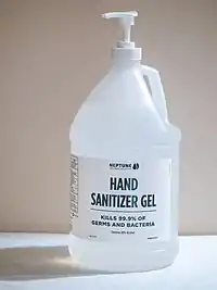 Recommendations to prevent the spread of the virus among humans include using standard infection control, which includes frequent washing of hands with soap and water or with alcohol-based hand sanitizers, especially after being out in public.[67] Chance of transmission is also reduced by disinfecting household surfaces, which can be done effectively with a diluted chlorine bleach solution.[68]