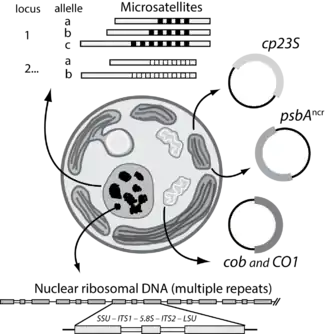 - ↑ Thornhill, Daniel J.; Lajeunesse, Todd C.; Santos, Scott R. (2007). "Measuring rDNA diversity in eukaryotic microbial systems: How intragenomic variation, pseudogenes, and PCR artifacts confound biodiversity estimates". Molecular Ecology. 16 (24): 5326–40. doi:10.1111/j.1365-294X.2007.03576.x. PMID 17995924. S2CID 12791319.