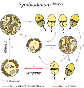 - ↑ Santos, Scott R.; Coffroth, Mary Alice (February 2003). "Molecular genetic evidence that dinoflagellates belonging to the genus Symbiodinium freudenthal are haploid". The Biological Bulletin. 204 (1): 10–20. doi:10.2307/1543491. JSTOR 1543491. PMID 12588740. S2CID 7258554.